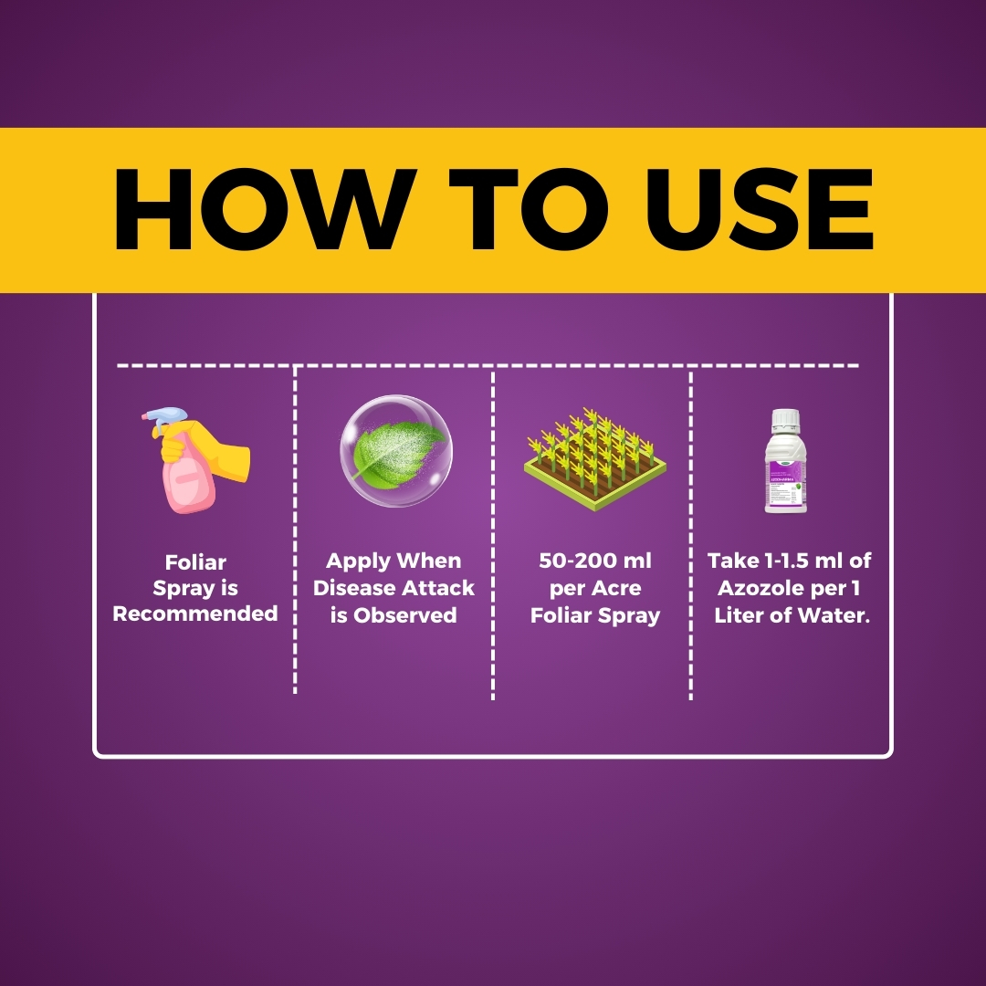 Katyayani Azodharma Azoxystrobin 18.2%+ difenoconazole 11.4 % sc dual systemic broad-spectrum fungicide with protective and curative action. It offers not only disease control but also improves crop health, quality and yield of a crop.It’s a dual systemic fungicide which inhibits spore germination at the early stage of fungal development. Thus, it protects the crop against invasion by fungal pathogens. It’s taken up by the plants and acts on the fungal pathogen during penetration and haustoria formation. Thus, it stops the development of fungi by interfering with the biosynthesis of sterols in the cell membrane. Demonstrates rapid uptake with translaminar and xylem-systemic movement Synergy of two advanced chemistry and multisite action.Dual mode of action, hence effective and provides longer duration control on diseases.It’s an excellent tool for resistance management.Translaminar and acropetal movement help in quicker and even dispersion in the plant system.More photosynthesis and healthy crops.Applicable crops: Paddy, Tomato, Chilli, Wheat, Maize cucurbits, avocados, mangoes, passionfruit, and poppies Grapes, potatoes Wide spectrum Usage: Used for fruits, vegetables, field crops as well as gardens.Spectrum: Paddy:Sheath blight, Blast; Tomato: Early Blight; Chilli: Anthracnose, Powdery mildew; Maize: Blight downy mildew; Wheat: Powdery mildew, Rust Systemic fungicide absorbed by leaves, roots, seeds. Long-lasting control: Through Preventive, Curative and Systemic action.