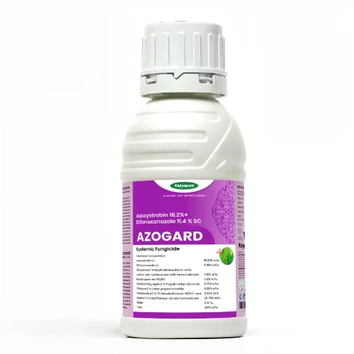 Katyayani Azozole Azoxystrobin 18.2%+ difenoconazole 11.4 % sc dual systemic broad-spectrum fungicide with protective and curative action. It offers not only disease control but also improves crop health, quality and yield of a crop.It’s a dual systemic fungicide which inhibits spore germination at the early stage of fungal development. Thus, it protects the crop against invasion by fungal pathogens. It’s taken up by the plants and acts on the fungal pathogen during penetration and haustoria formation. Thus, it stops the development of fungi by interfering with the biosynthesis of sterols in the cell membrane. Demonstrates rapid uptake with translaminar and xylem-systemic movement Synergy of two advanced chemistry and multisite action.Dual mode of action, hence effective and provides longer duration control on diseases.It’s an excellent tool for resistance management.Translaminar and acropetal movement help in quicker and even dispersion in the plant system.More photosynthesis and healthy crops.Applicable crops: Paddy, Tomato, Chilli, Wheat, Maize cucurbits, avocados, mangoes, passionfruit, and poppies Grapes, potatoes Wide spectrum Usage: Used for fruits, vegetables, field crops as well as gardens.Spectrum: Paddy:Sheath blight, Blast; Tomato: Early Blight; Chilli: Anthracnose, Powdery mildew; Maize: Blight downy mildew; Wheat: Powdery mildew, Rust Systemic fungicide absorbed by leaves, roots, seeds. Long-lasting control: Through Preventive, Curative and Systemic action.