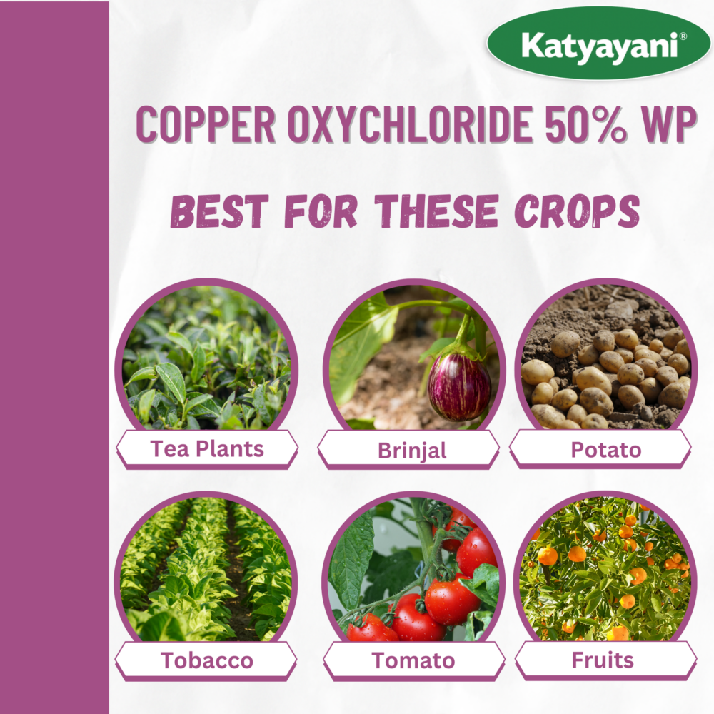 It is highly effective fungicide based on copper oxy chloride containing 50% w/w copper content and balance adjuvants