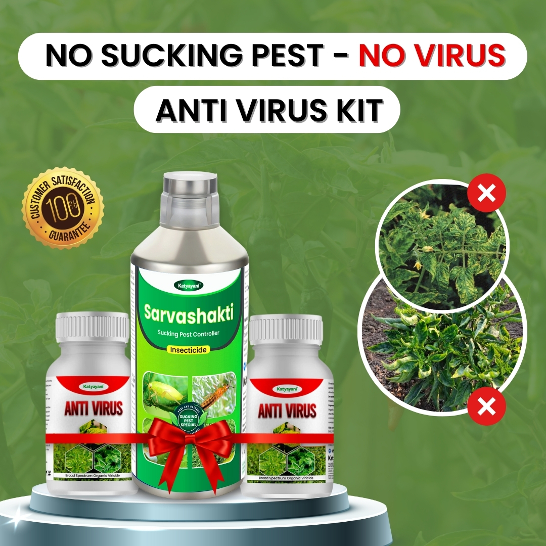 Sarvashakti targets all sucking pests, while AntiVirus tackles a range of viral diseases. Together, they offer a complete solution for pest and virus management in crops, ensuring comprehensive protection against both types of threats.