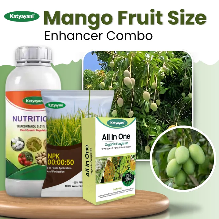 Boost your mango harvest with the Mango Fruit Size Enhancer Pro Combo – a powerful, farmer-friendly solution crafted to increase fruit size, improve taste, and enhance overall productivity. This all-in-one combo gives your mango trees the nutrients, growth boosters, and protection they need for healthier, high-quality fruits.