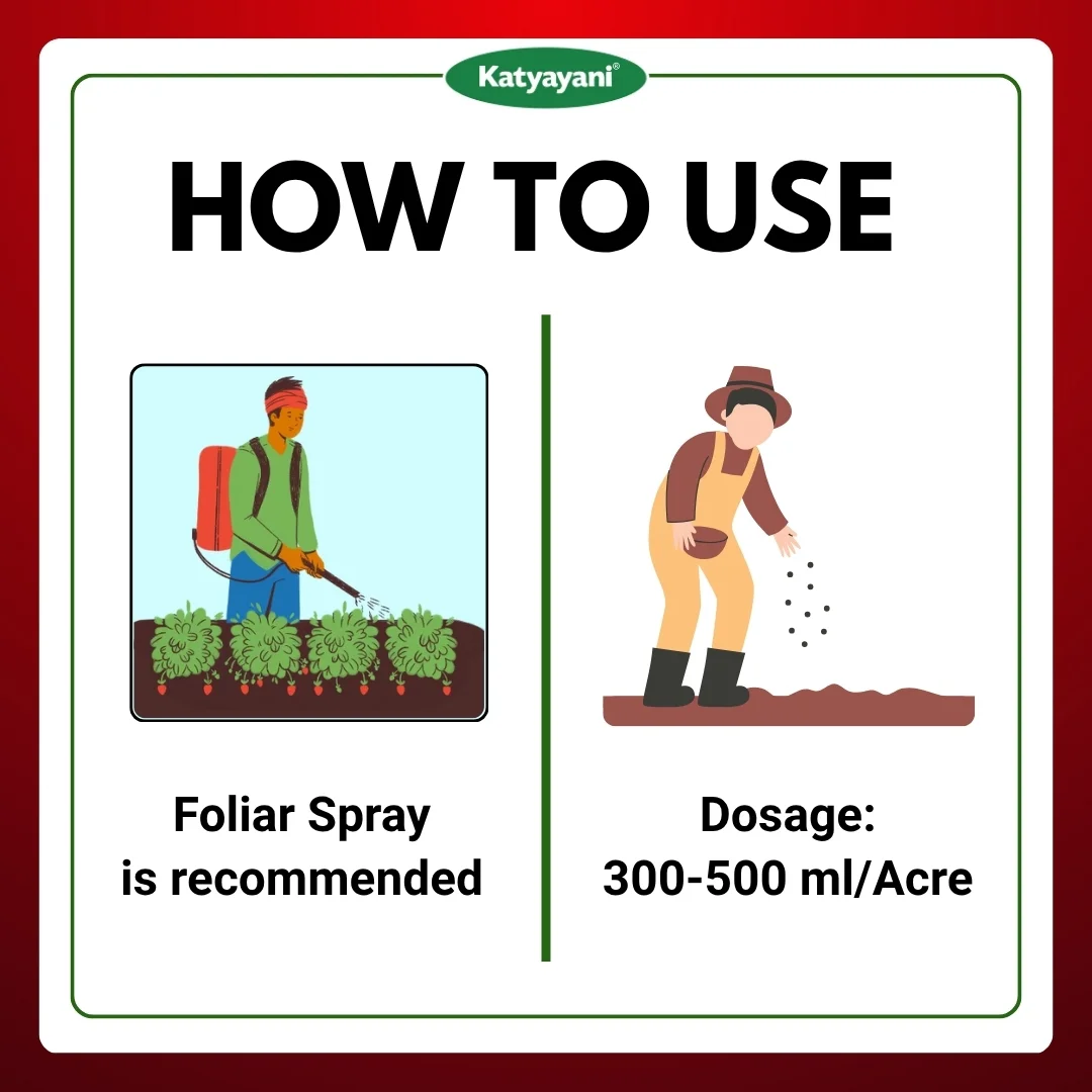 Spray – Cotton 400 – 500 ml / Acre, Chilli 300 – 400 ml / Acre