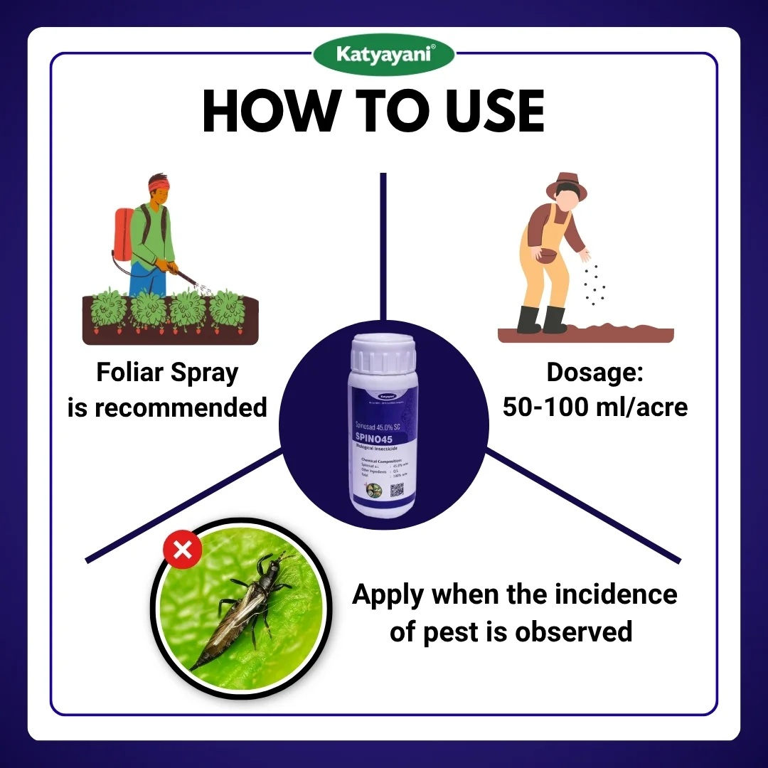 Katyayani Spino45 contains Spinosad 45% SC which is a biological insecticide, a naturally derived product from the fermentation of